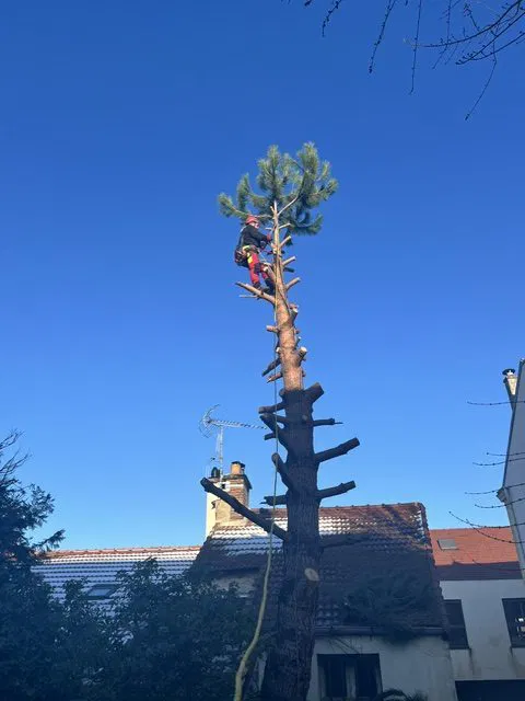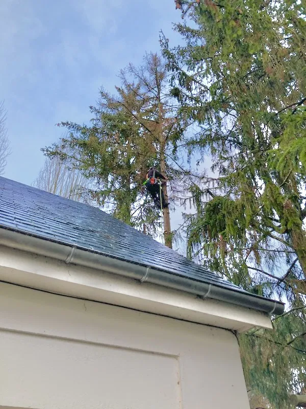 Abattage progressif par tronçons, idéal pour les espaces restreints.